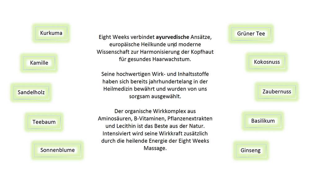 Eight Weeks verbindet ayurvedische Ansätze, europäische Heilkunde und moderne Wissenschaft zur Harmonisierung der Kopfhaut für gesundes Haarwachstum.